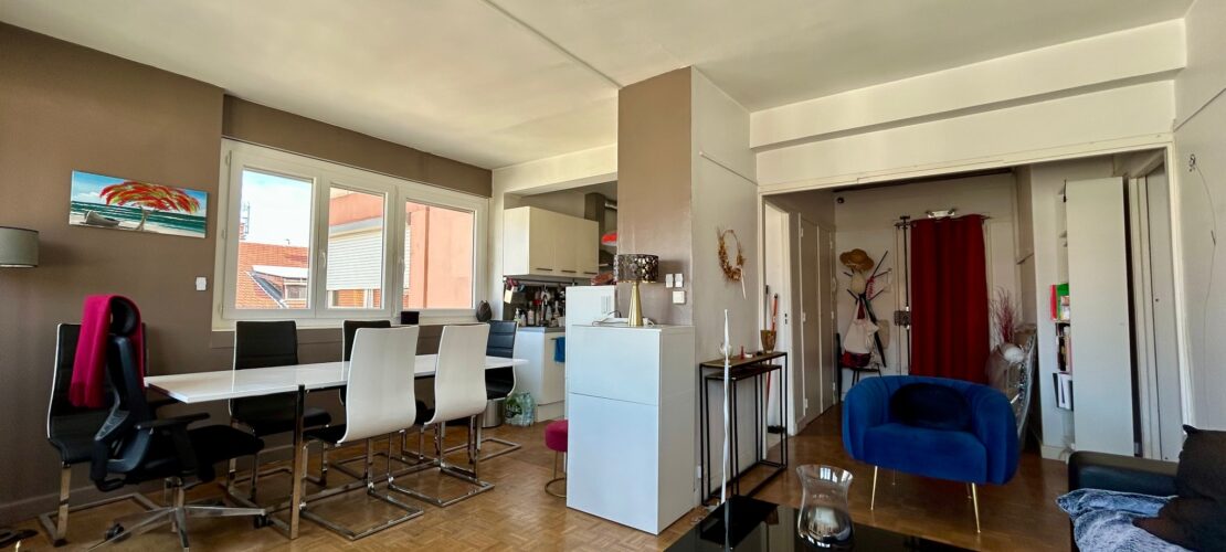 Cet appartement bénéficie d’un espace de vie agréable avec un grand salon et une cuisine ouverte.