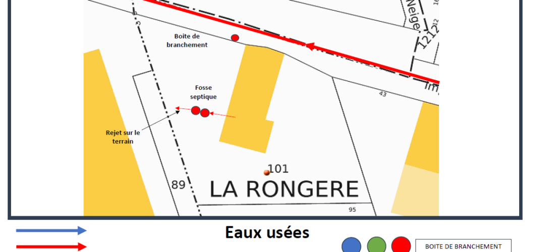 Travaux lourds de rénovation (toutefois la maison est saine, les huisseries sont toutes en double vitrage) et raccordement à l’assainissement collectif à prévoir. Le bien est aisément raccordable à l’assainissement collectif. Les EAUX USEES de l’habitation sont à raccorder à la boite de raccordement en attente (sur trottoir). Les eaux pluviales sont conformes.