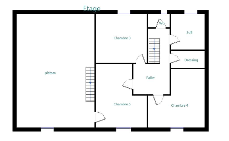 A l’étage : salle de jeux, salle de bain, WC, dressing, trois chambres.